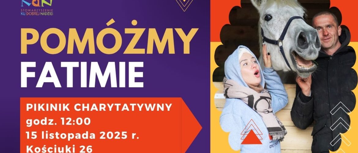 🟩 Fatima przez lata pomagała ludziom, którzy korzystali z hipoterapii. Teraz sama potrzebuje pomocy. Zachorowała. Ma wsparcie swoich opiekunów ze Stowarzyszenia „Ku Dobrej Nadziei”, którzy wraz z wolontariuszkami organizują charytatywny piknik w Kościukach niedaleko Białegostoku.